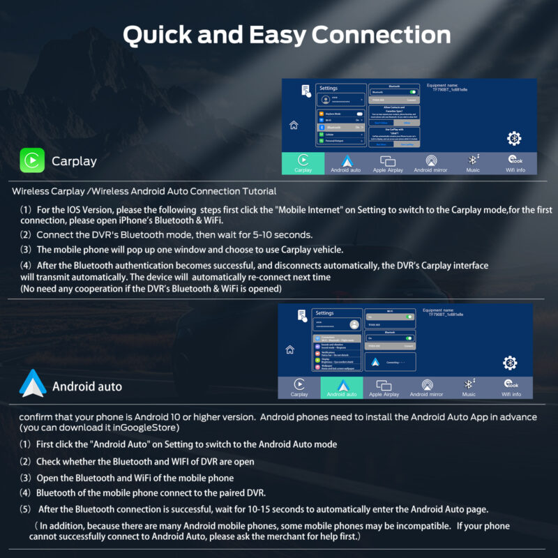 Car Dash Camera DVR 9.66 Inch Front 4k and Rear 1080P Recording Dash Cam Night Vision AUX BT