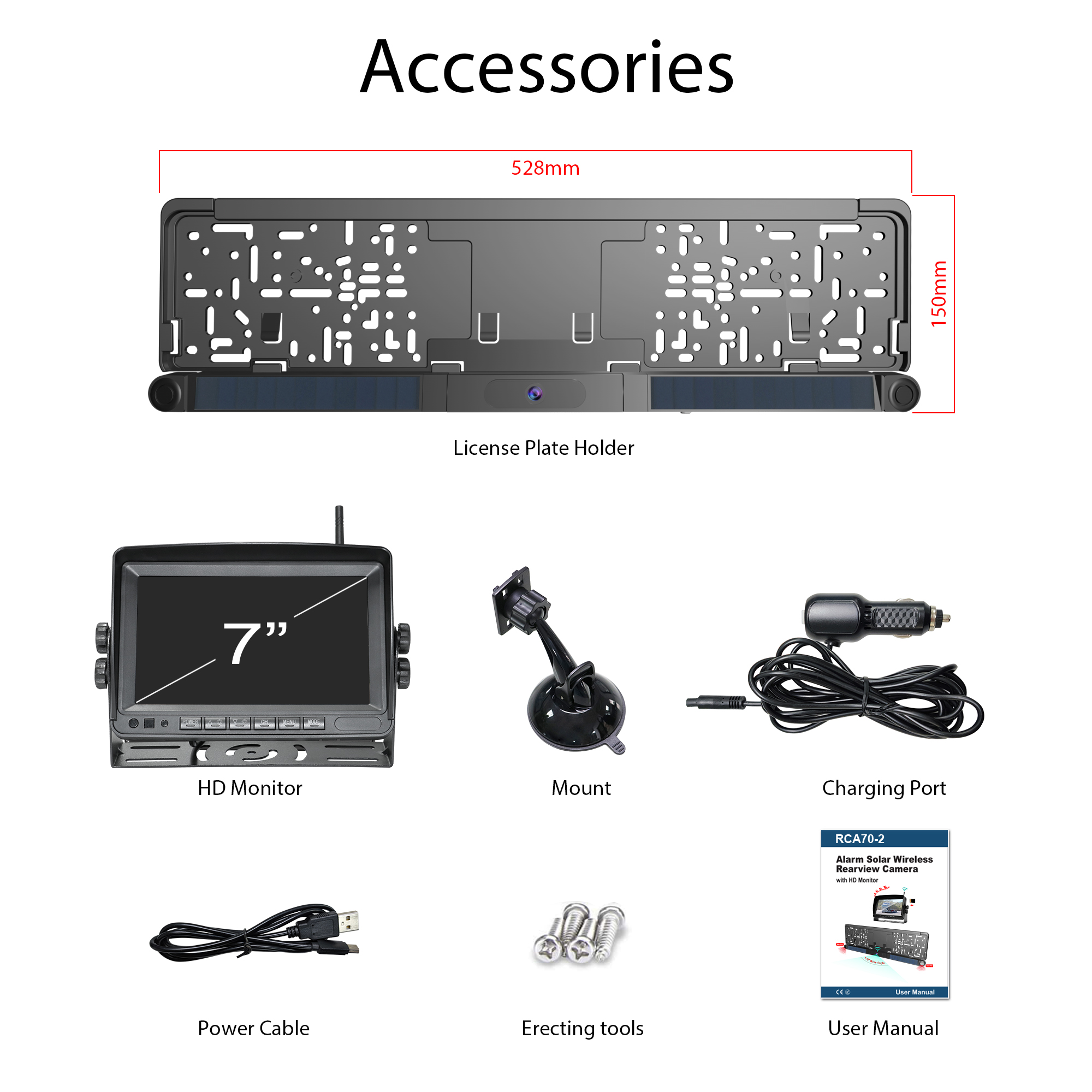 Alarm Solar Wireless Rearview Camera and 7.0” Monitor